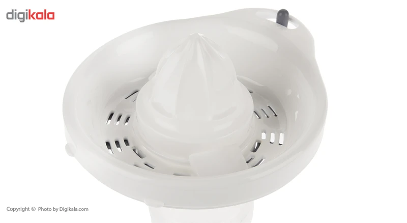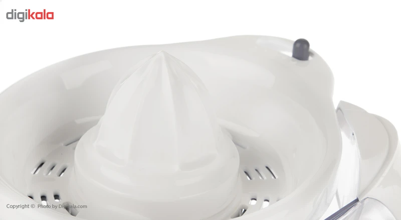 این دستگاه دو مخروط برای آب‌گیری دارد؛ طراحی آن‌ها طوری است که هم مرکبات ریز و هم درشت و حتی مرکباتی که کشیده‌تر هستند، مانند لیموشیرین را هم آب‌گیری می‌کند. حرکت موتور و مخروط به ‌صورت چپ و راست است و با هر بار فشاردادن میوه روی مخروط، موتور به‌صورت ساعت‌گرد یا پادساعت‌گرد می‌چرخد. این عمل باعث می‌شود تا آب‌گیری کامل انجام شود. به این مکانیسم عمل “دکمه‌فشاری” گفته می‌شود؛ به این معنی که نصف پرتقال روی مخروط گذاشته شده و به سمت پایین فشار داده می‌شود. تا زمانی که فشار وارد می‌شود، موتور و مخروط می‌چرخد و به ‌محض قطع فشار، چرخش نیز قطع می‌شود. با فشار دوباره، موتور و مخروط به سمت مخالف می‌چرخد. زائده‌های طرفین مخروط نیز باعث می‌شود تا تفاله‌های روی صافی بار دیگر حرکت داده شوند تا آب‌میوه از منافذ عبور کند.