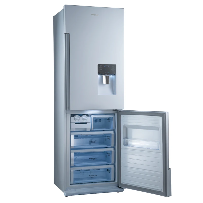 فریزر یخچال فریزر دیپوینت 24 فوت مدل DECENT سفید نیز شامل پنج طبقه و چهار کشو جادار است. وجود یخساز دستی در این بخش، به شما امکان میدهد همیشه یخ تازه در دسترس داشته باشید. در کنار آن، سیستم روشنایی LED، دید کافی را در تمام نقاط دستگاه فراهم میکند.