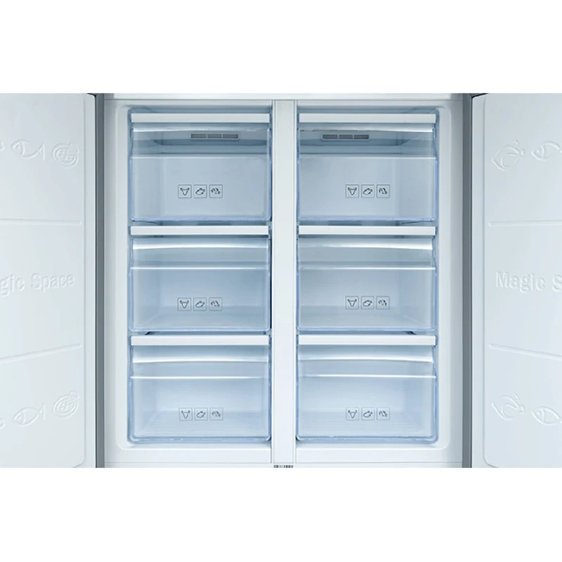 در قسمت فریزر، دو کشوی عمیق و بخشهای تفکیکشده برای گوشت، ماهی و مواد غذایی منجمد طراحی شدهاند تا همیشه همه چیز در دسترس و منظم باشد.