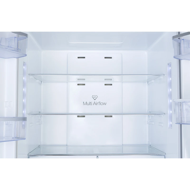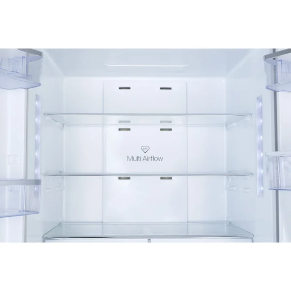 علاوه بر این، سیستم گردش هوای چندگانه (Multi Air Flow) دما را بهصورت یکنواخت در تمام نقاط یخچال پخش میکند. این ویژگی باعث میشود مواد غذایی در تمام طبقات تازه و سالم باقی بمانند.